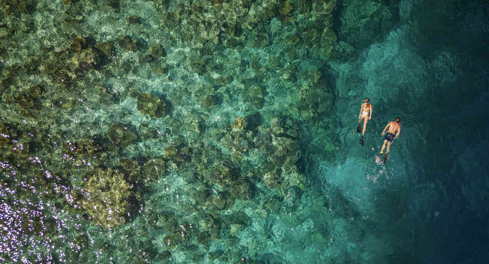 我们的度假酒店位于世界第 2 大环礁——卡夫达鲁环礁 (Gaafu Dhaalu Atoll)。与鲨鱼、金枪鱼、梭鱼和旗鱼的刺激邂逅并不罕见,您可通过水肺潜水、桨板冲浪或乘坐水上摩托艇探索海域。