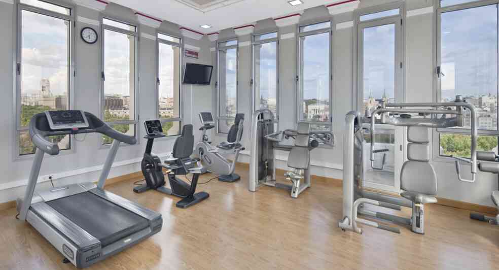 - Relax at the rooftop gym with spectacular views of the Madrid skyline