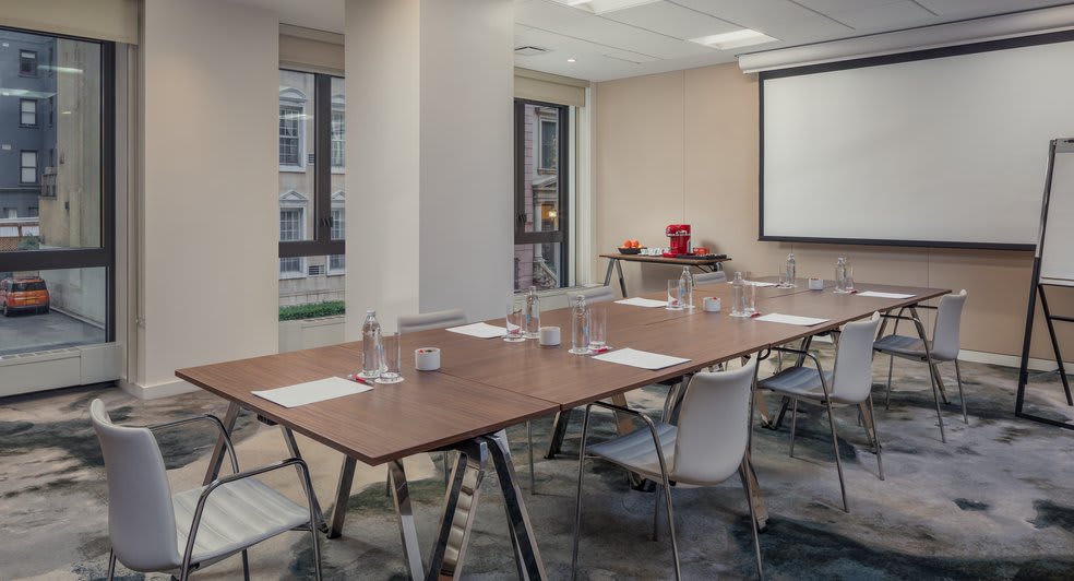 是的,这家位于曼哈顿中城的现代化酒店拥有一间可容纳25名与会者的会议室。 对于非正式商务活动,酒店提供配有独特户外露台的帝国套房。 此外,酒店也聘有活动专家,可以安排视听设备和您可能需要的任何其他服务。
